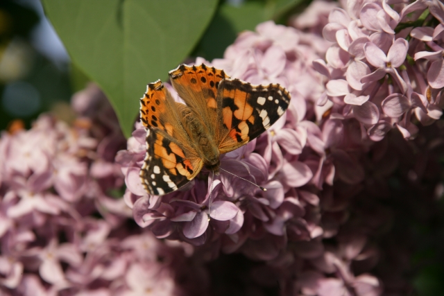 Distelfalter auf Flieder von oben - 300mm