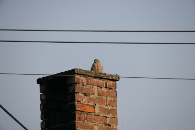Turmfalke von vorne, blickt in die Kamera; um den Schnabel herum