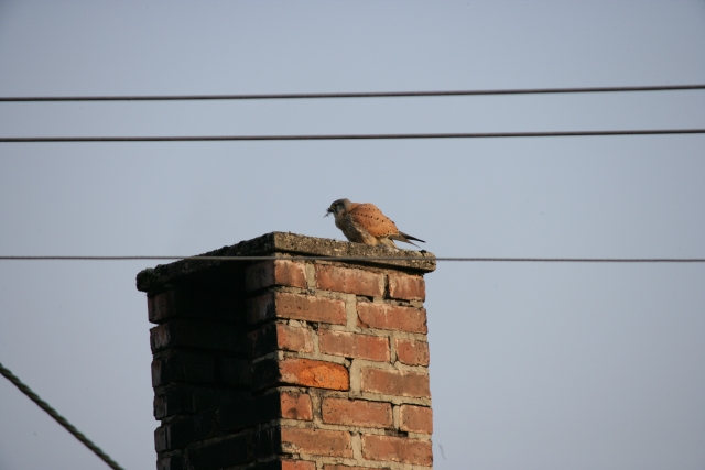Turmfalke von der Seite, am Schnabel sind deutlich die Fellreste zu