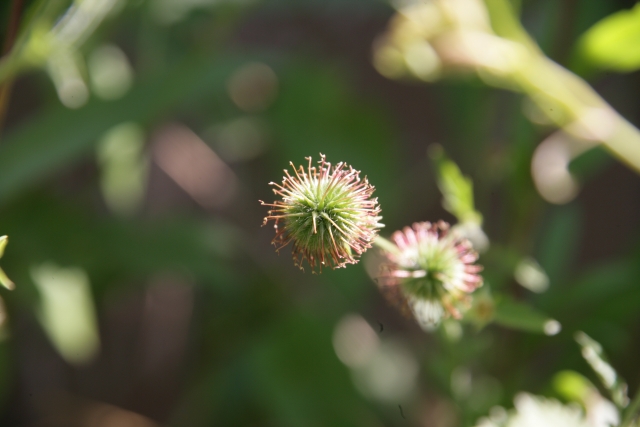 Samenkapsel von Pflanze vor Terrasse