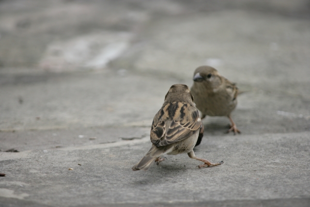 Zwei Spatzen stehen sich gegenüber - 500mm (Zoom)