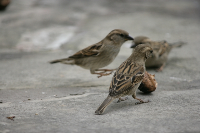 Spatz kurz vor dem Aufsetzen - andere werden erschreckt zur Seite springen - 500mm (Zoom)