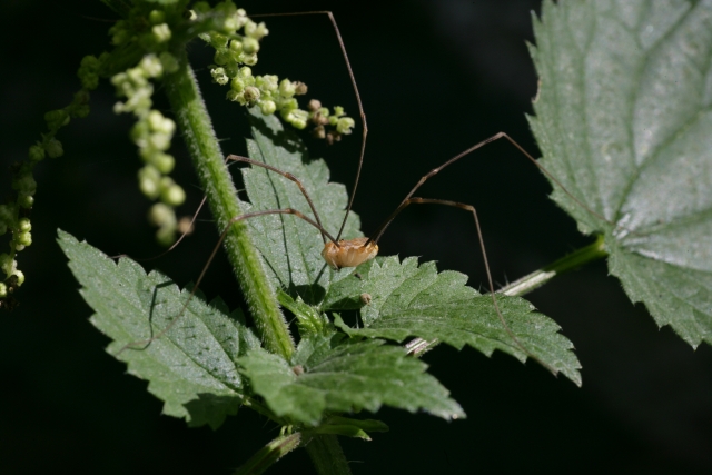 Ein Weberknecht auf einer Brennnessel - 90mm.
