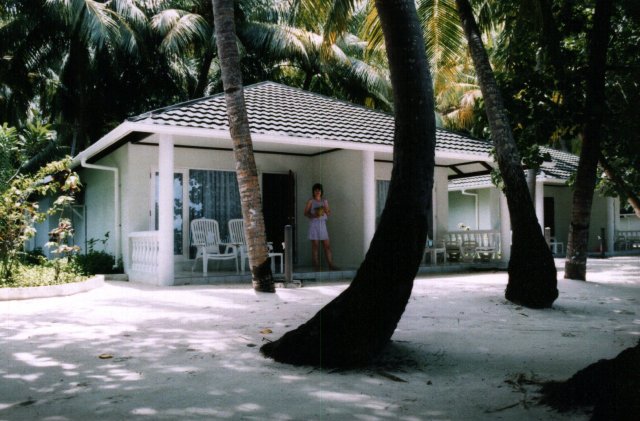 nochmals unser Bungalow. Ingrid steht vor der Terassentüre.